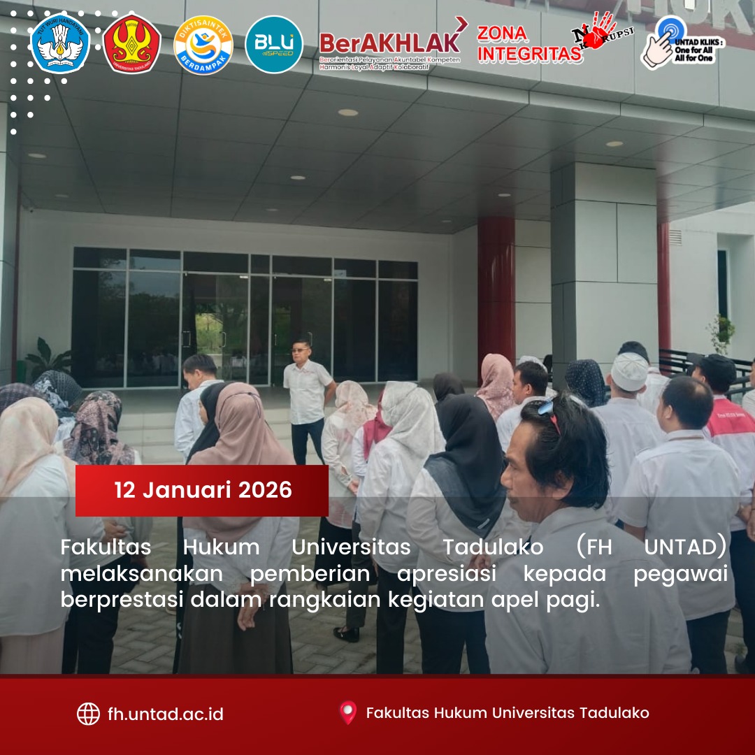SelengkapnyaPalu, 12 Januari 2026 — Fakultas Hukum Universitas Tadulako (FH UNTAD) melaksanakan pemberian apresiasi kepada...