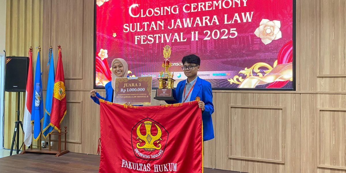 Banten, 29 September 2025 — Prestasi membanggakan kembali diraih oleh Fakultas Hukum Universitas Tadulako. Dua delegasi terbaiknya, Siti Azizah dan Fadil Aditya (mahasiswa semester 5 FH Untad), sukses meraih Juara 3 dalam Kompetisi Surat Dakwaan Nasional Sultan Jawara Law Festival (SJLF) II 2025, yang diselenggarakan oleh Tirtayasa Moot Court Community (TMCC) Fakultas Hukum Universitas Sultan Ageng Tirtayasa.