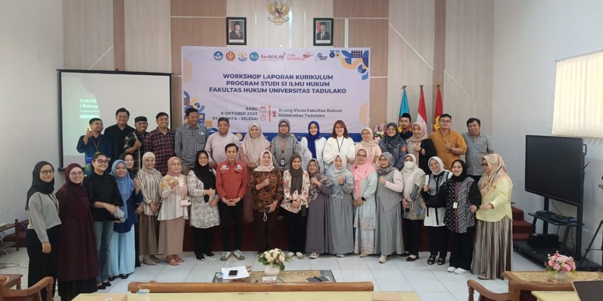 Palu, 8 Oktober 2025 — Fakultas Hukum Universitas Tadulako menyelenggarakan kegiatan Workshop Laporan Kurikulum Program Studi S1 Ilmu Hukum yang berlangsung di Ruang Video Conference (Vicon) Fakultas Hukum. Kegiatan ini dipandu oleh Ibu Belona Danduru Salurante, S.H., M.Hum. selaku pembawa acara (MC), dan dihadiri oleh jajaran pimpinan fakultas, dosen, serta tim penyusun kurikulum.